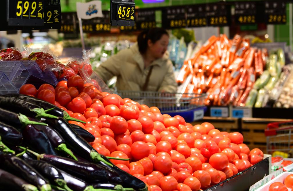 消費(fèi)者在江蘇省無錫市一家超市里選購蔬菜(3月9日攝)。新華社發(fā)(還月亮攝)