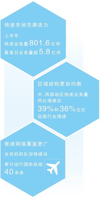 “上半年,市場發(fā)展動力強(qiáng)勁,行業(yè)統(tǒng)籌全網(wǎng)資源,在有效滿足多樣化寄遞需求的同時,助力消費需求持續(xù)釋放。”國家郵政局有關(guān)負(fù)責(zé)人表示。