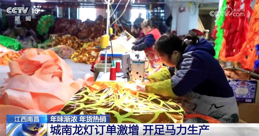 江西南昌的城南龍燈有著700多年的制作歷史。春節(jié)前,當(dāng)?shù)爻悄淆垷羯a(chǎn)基地訂單激增。數(shù)百平方米的廠房?jī)?nèi),設(shè)置了龍頭、龍身、龍衣、龍尾等制作區(qū),50多名工人都在有條不紊地完成自己的工序。在發(fā)貨區(qū),師傅們忙著裝貨打包,趕在年前給來自全國(guó)和海外的訂單發(fā)貨。