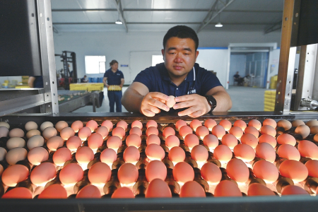 工作人員集中整理、包裝合格蛋品。