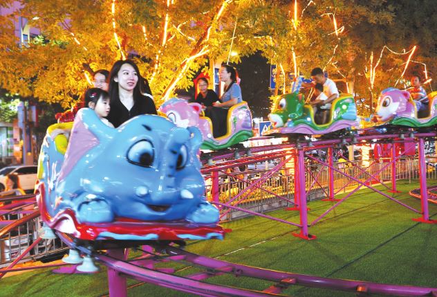 8月21日,游客在城區(qū)大欣城夜市體驗(yàn)游樂(lè)設(shè)施。暑期以來(lái),城區(qū)“夜經(jīng)濟(jì)”熱度持續(xù)攀升,多彩的夜間消費(fèi)讓城市持續(xù)煥發(fā)活力。本報(bào)記者 宮清華攝