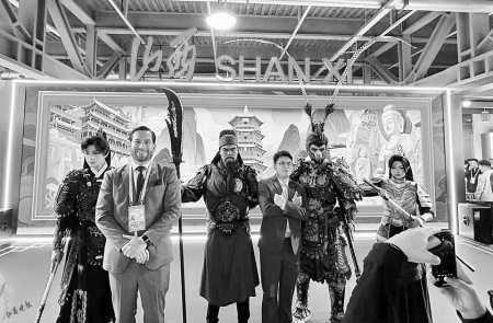 第八屆中國(guó)國(guó)際進(jìn)口博覽會(huì)山西展廳前,與熱門(mén)IP人物互動(dòng)合影的觀眾絡(luò)繹不絕。