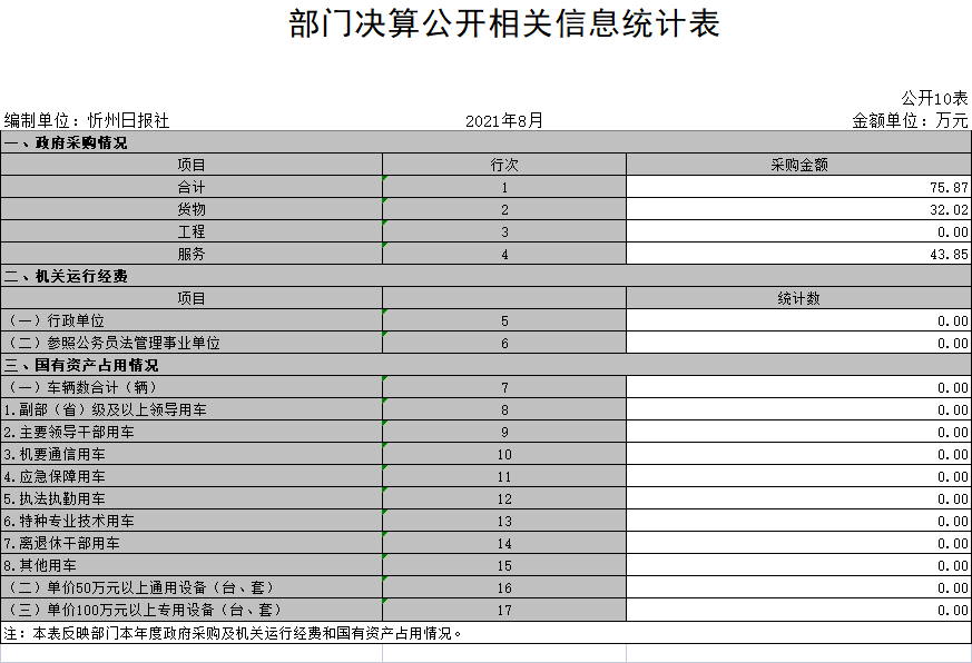 10、部門決算公開相關(guān)信息統(tǒng)計(jì)表
