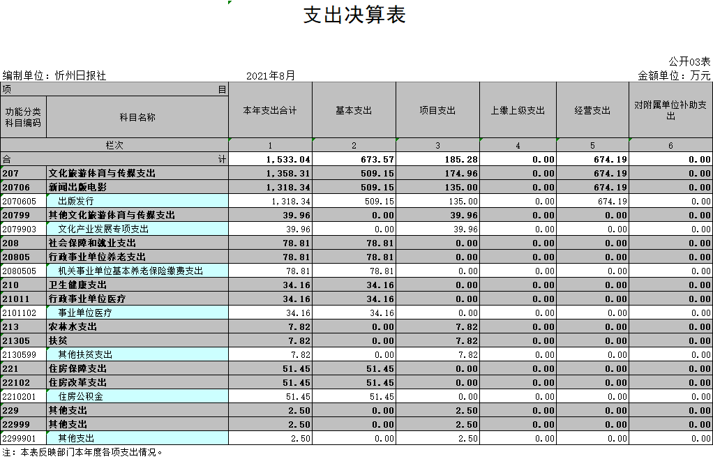 (五)政府性基金決算情況:忻州日?qǐng)?bào)社不涉及政府性基金,故政府性基金決算支出為0.