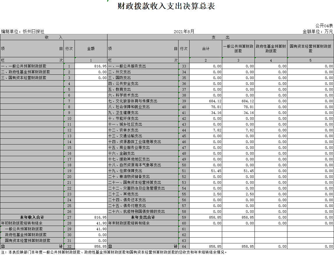 3、年末結(jié)轉(zhuǎn)情況:本年度財(cái)政補(bǔ)助結(jié)轉(zhuǎn)0萬元,非財(cái)政補(bǔ)助結(jié)轉(zhuǎn)0萬元。