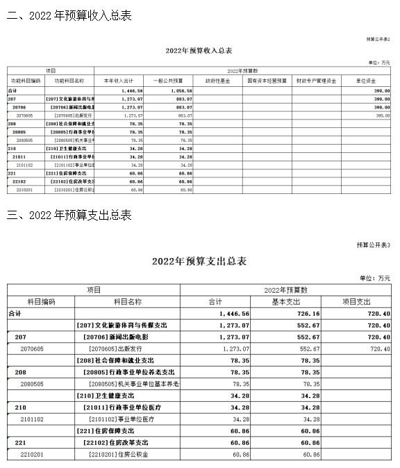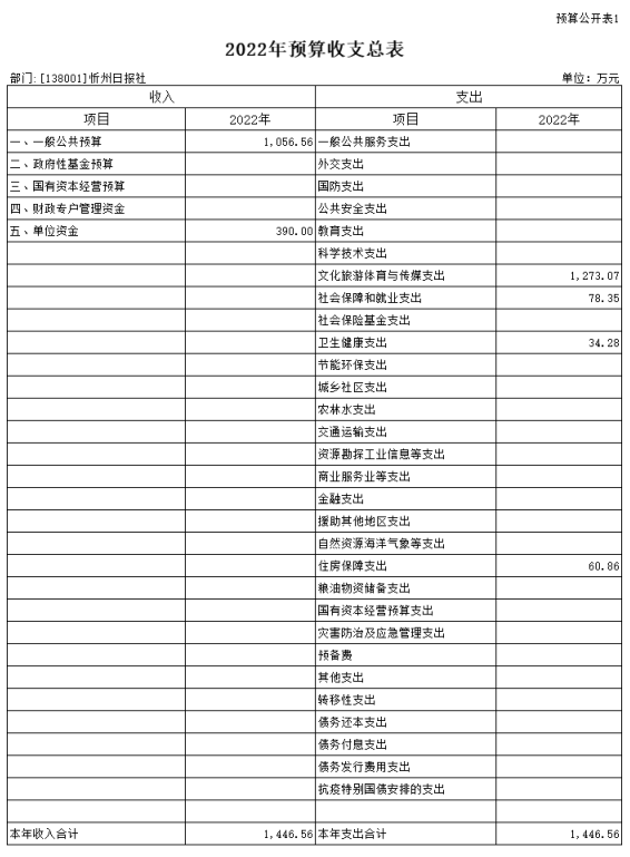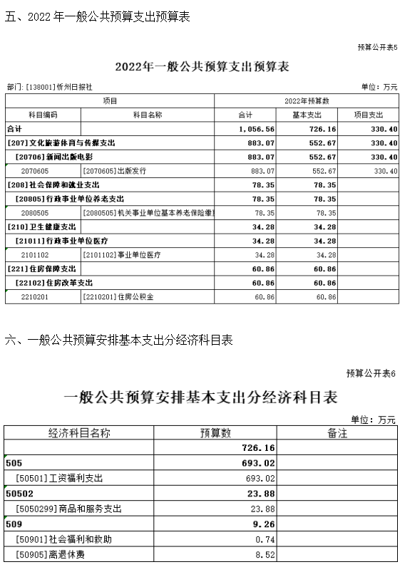 第二部分2022年度忻州日報社預(yù)算報表