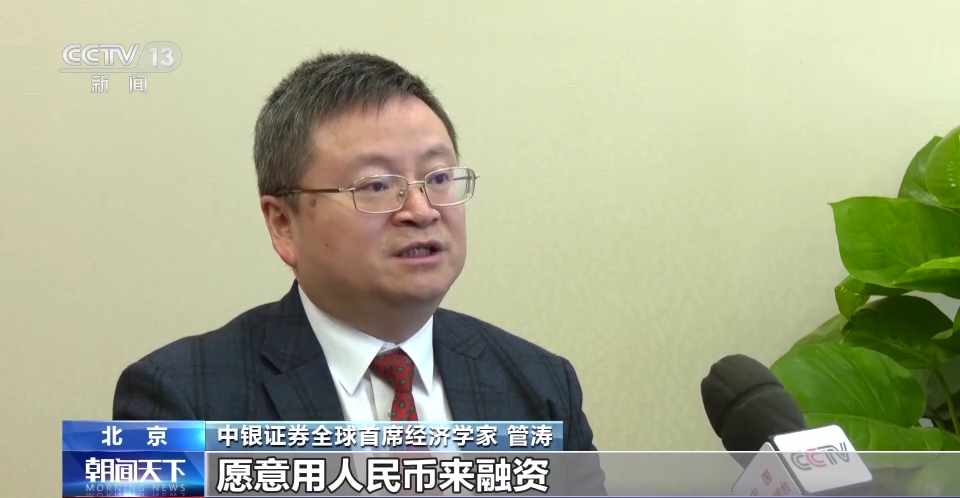 中銀證券全球首席經(jīng)濟(jì)學(xué)家 管濤:根據(jù)對一些企業(yè)進(jìn)行調(diào)查的結(jié)果顯示,當(dāng)全球主要國際化貨幣流動性比較緊張的時候,有超過七成的境外企業(yè)愿意用人民幣來融資,在對華貿(mào)易中也有68%的企業(yè)愿意接受用人民幣作為融資貨幣。