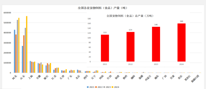 據(jù)中國飼料工業(yè)協(xié)會(huì)最新統(tǒng)計(jì),2024年山東省寵物食品產(chǎn)量達(dá)56.6萬噸,超越河北,東北地區(qū)亦呈新興發(fā)展態(tài)勢。王宗禮稱,寵物產(chǎn)業(yè)集群效應(yīng)顯著,依托原料、區(qū)位等優(yōu)勢實(shí)現(xiàn)集群化發(fā)展。山東、河北產(chǎn)量占全國近70%,長三角占21%。