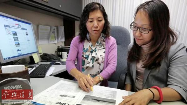 資料圖片:中國影視演員吳姍姍同房產(chǎn)經(jīng)紀(jì)人一起查看美國房地產(chǎn)信息(美聯(lián)社)