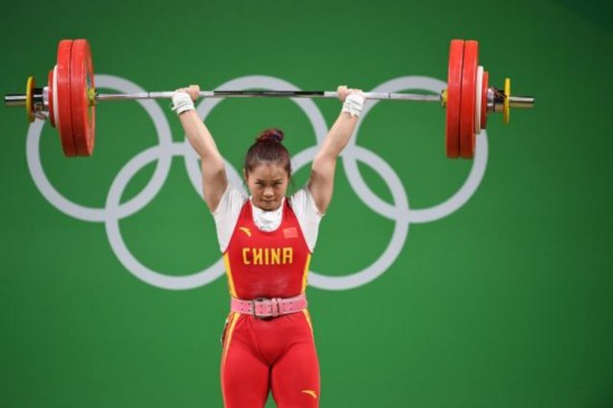 (圖為里約奧運(yùn)會(huì)舉重女子63公斤級(jí)比賽中,中國(guó)選手鄧薇兩破世界紀(jì)錄并奪冠。新華社圖片)