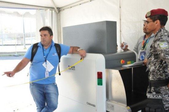 (圖為里約奧運(yùn)會(huì)工作人員在奧運(yùn)場(chǎng)館安裝中國(guó)安檢設(shè)備,新華社圖片)
