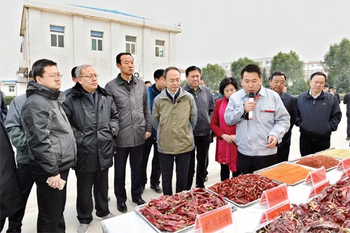 市長(zhǎng)鄭連生帶隊(duì)觀摩五寨縣辣椒深加工項(xiàng)目。(本報(bào)記者 馮曉磊 攝)