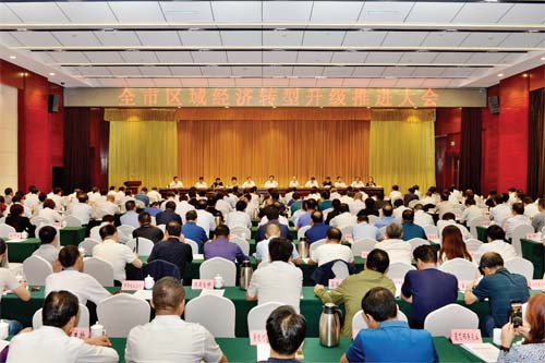 會議指出,要在六方面做好轉(zhuǎn)型升級工作。第一,在規(guī)劃與指導(dǎo)上,要把握高度,突出精度。必須清醒地把握轉(zhuǎn)型升級的大背景、大趨勢,全市上下要強化不轉(zhuǎn)沒出路、慢轉(zhuǎn)就落后的理念,必須準(zhǔn)確把握轉(zhuǎn)型升級的新標(biāo)準(zhǔn)、新要求,始終堅持轉(zhuǎn)型為綱、產(chǎn)業(yè)為王、創(chuàng)新為上、改革為要,要做大優(yōu)勢,補齊短板。必須加強和改善黨對經(jīng)濟(jì)工作的領(lǐng)導(dǎo),將轉(zhuǎn)型升級內(nèi)容納入市委常委會1+3季度經(jīng)濟(jì)運行分析制度,做到底清數(shù)明、精準(zhǔn)指導(dǎo)。第二,在產(chǎn)業(yè)和項目上,要突出轉(zhuǎn)型、推動轉(zhuǎn)型。核心要在六大主戰(zhàn)場主陣地,突出新動能培育、新技術(shù)應(yīng)用、新產(chǎn)品開發(fā)。要緊盯產(chǎn)業(yè)項目不放,緊盯相關(guān)指標(biāo)不放,緊盯落后的縣(市、區(qū))和部門不放,大力推動支柱產(chǎn)業(yè)轉(zhuǎn)型升級,大力推動開發(fā)區(qū)轉(zhuǎn)型升級,大力推動民營經(jīng)濟(jì)轉(zhuǎn)型升級。要把功夫下在招商引資、招財引智和項目落地上。要落實責(zé)任制,將縣細(xì)化到干部和崗位。第三,在協(xié)調(diào)與環(huán)境上,要深化改革、擴(kuò)大開放。要堅持以改革促轉(zhuǎn)型,堅持以開放促轉(zhuǎn)型,堅持以環(huán)保倒逼轉(zhuǎn)型,堅持以環(huán)境保障轉(zhuǎn)型。第四,在市場與人才上,要激活主體,突出創(chuàng)新。要以更大力度推進(jìn)創(chuàng)新發(fā)展,補齊我市創(chuàng)新驅(qū)動短板,要發(fā)揮市場主導(dǎo)作用,強化企業(yè)主體地位和科技人才的主力作用,在新一輪的人才大戰(zhàn)中有所作為,引導(dǎo)創(chuàng)新要素向企業(yè)集聚。要全面深化企業(yè)改革,扎實推進(jìn)國企改革和轉(zhuǎn)型升級。要為企業(yè)家放心干、放膽干、放手干撐腰做主,要發(fā)揮金融在區(qū)域經(jīng)濟(jì)轉(zhuǎn)型中的發(fā)動機(jī)、產(chǎn)業(yè)升級中的推進(jìn)器作用,切實激發(fā)活力。第五,在責(zé)任與擔(dān)當(dāng)上,要強化主責(zé),聚焦主業(yè)。要認(rèn)真貫徹落實中辦印發(fā)的《關(guān)于進(jìn)一步激勵廣大干部新時代新?lián)?dāng)新作為的意見》,全面落實習(xí)近平總書記關(guān)于“三個區(qū)分開來”的重要要求,旗幟鮮明為敢于擔(dān)當(dāng)?shù)母刹繐窝膭?。市縣黨委、政府班子成員對轉(zhuǎn)型升級要做到指標(biāo)到人、臺賬管理、動態(tài)調(diào)控、年底交賬,并作為領(lǐng)導(dǎo)班子和領(lǐng)導(dǎo)干部年度民主生活會對照檢查的重要內(nèi)容,作為干部選拔任用的重要依據(jù)。黨政部門的每一位班子成員,都要聯(lián)系一個產(chǎn)業(yè)園區(qū),抓好一個以上轉(zhuǎn)型升級示范項目。相關(guān)部門都要對標(biāo)履職,量化到人,共同推動今年轉(zhuǎn)型升級考核指標(biāo)應(yīng)統(tǒng)盡統(tǒng)、能升盡升、能增盡增、全力破零。第六,在考核與問責(zé)上,要分類實施,從嚴(yán)要求。在今年區(qū)域經(jīng)濟(jì)轉(zhuǎn)型升級考核中排后三位的要公開作出檢查。