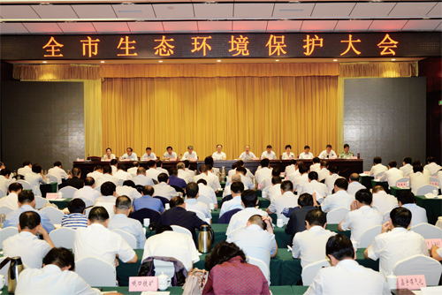 圖為全市生態(tài)環(huán)境保護(hù)大會(huì)會(huì)場(chǎng)。本報(bào)記者 范濤 攝