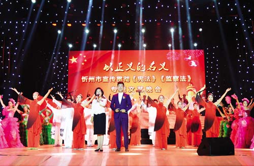本報訊(記者康素芳 張建國)9月18日,忻州市宣傳貫徹《憲法》《監(jiān)察法》專題文藝晚會在忻州劇院匯報演出。省人大常委會副主任、市委書記李俊明,市委副書記、市長鄭連生,市政協(xié)主席劉鋼柱,市委常委、宣傳部長陳義青,市委常委、市紀委書記、市監(jiān)委主任范晉昌,市委常委、秘書長崔建新,市委常委、岢嵐縣委書記王志東,市委常委、忻州軍分區(qū)政委劉瑞生,市政協(xié)副主席邊升陽、高志偉,市檢察院檢察長周東曙,市政府秘書長郭寶厚等出席并與我市千余名黨員干部一同觀看演出。