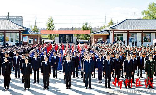 忻州市革命烈士陵園內(nèi),翠柏列陣,巍然聳立的紀(jì)念碑上“革命烈士永垂不朽”八個大字蒼勁有力。廣場上,部隊官兵、武警官兵、公安干警、應(yīng)急民兵、學(xué)校師生、機(jī)關(guān)干部、社會團(tuán)體和志愿者代表等社會各界人士整齊列隊,靜靜肅立。市委、市人大、市政府、市政協(xié)、忻州軍分區(qū),忻府區(qū)委、區(qū)人大、區(qū)政府、區(qū)政協(xié),人民團(tuán)體和各界群眾敬獻(xiàn)的花籃依次擺放在紀(jì)念碑基座前廣場上。