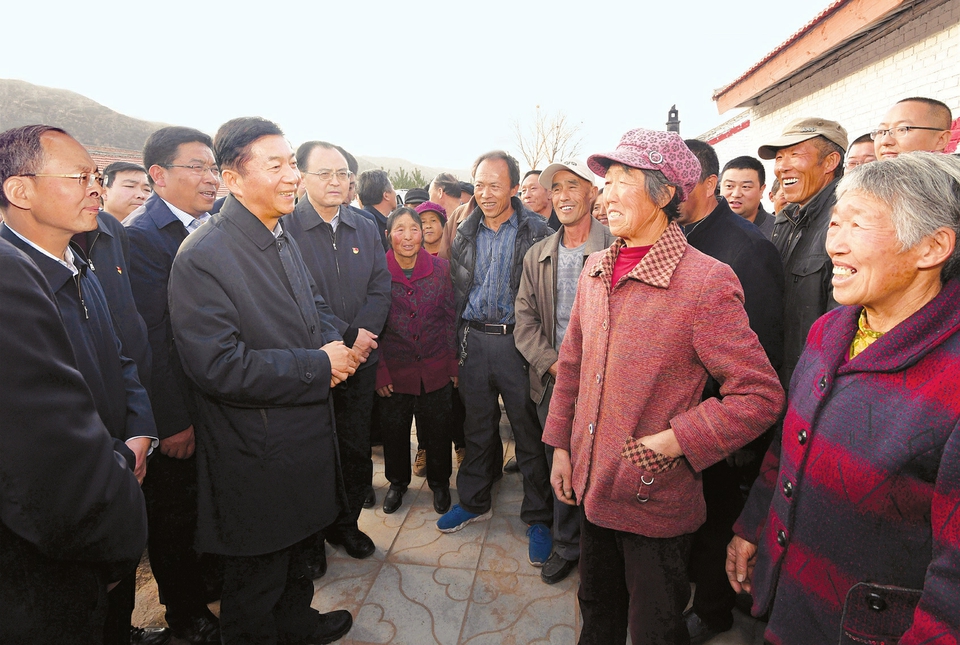 省委書(shū)記、省人大常委會(huì)主任駱惠寧在寧武縣西馬坊鄉(xiāng)榆木橋村考察時(shí),與村民們親切交談,了解生產(chǎn)生活,并向大家講授秋季覆膜保墑的技術(shù)要領(lǐng)。本報(bào)記者 李聯(lián)軍 攝