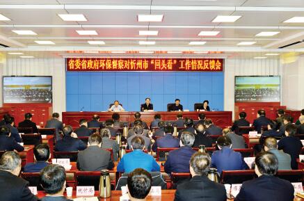 圖為省委省政府環(huán)保督察對忻州市“回頭看”工作情況反饋會會場。本報記者范濤攝