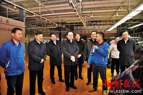 圖為省人大常委會副主任、市委書記李俊明在鄂爾多斯市調(diào)研奇瑞汽車整車生產(chǎn)項目建設運營情況。本報記者劉紀森攝