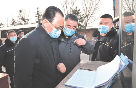 占地2400余畝的禹王煤炭氣化公司,擁有1500余名員工,集選煤、煉焦、化產(chǎn)、發(fā)電、鐵運于一體,是忻州煤化工循環(huán)經(jīng)濟園區(qū)的核心企業(yè),為園區(qū)內(nèi)外31家工礦企業(yè)和職業(yè)學校提供生產(chǎn)生活用氣。在廠區(qū)出入口,工作人員逐一測溫、登記,對車輛進行消毒作業(yè)。李俊明仔細察看人員出入登記冊,了解員工出行追溯情況,詢問企業(yè)生產(chǎn)人員疫情防控物資特別是口罩儲備情況。他強調(diào),當前形勢下,搞好疫情防控仍然是實現(xiàn)安全穩(wěn)定生產(chǎn)的重要前提,要嚴格落實各項防控措施,防控機制、檢疫查驗、設施物資、內(nèi)部管理、宣傳教育等都要到位,在做好人員出入管控的基礎上,特別要注意生產(chǎn)人員最少化,降低人流密度,最大限度避免人員聚集。