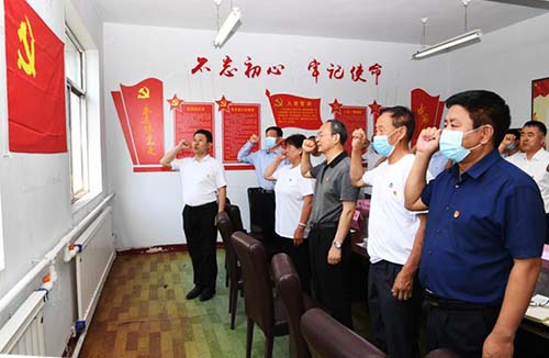 鄭連生一行與基層黨員重溫入黨誓詞。劉紀(jì)森 攝