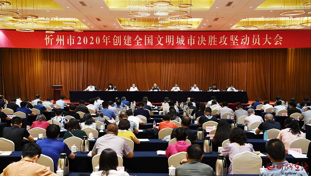 忻州市2020年創(chuàng)建全國文明城市決勝攻堅動員大會會場。 本報記者 劉紀森