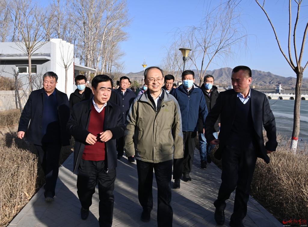 在五臺縣城瀛湖公園。宮愛文 攝 鄭連生還到五臺縣城調(diào)研瀛湖公園三期工程。 (責(zé)任編輯:盧相?。?/span> |