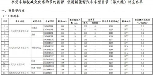 原標(biāo)題:工信部發(fā)布第八批節(jié)能汽車補充目錄 新增163款車型