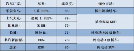 中國質(zhì)量協(xié)會表示,市場競爭和質(zhì)量持續(xù)提高促使我國新能源汽車用戶滿意度指數(shù)大幅提升,尤其是高續(xù)航里程及中高端產(chǎn)品受到用戶青睞。測評數(shù)據(jù)顯示,續(xù)航里程越高的產(chǎn)品,滿意度也更高。主流合資品牌向插電混動汽車市場投放成熟的中高端產(chǎn)品,這些產(chǎn)品的滿意度水平相對更高。