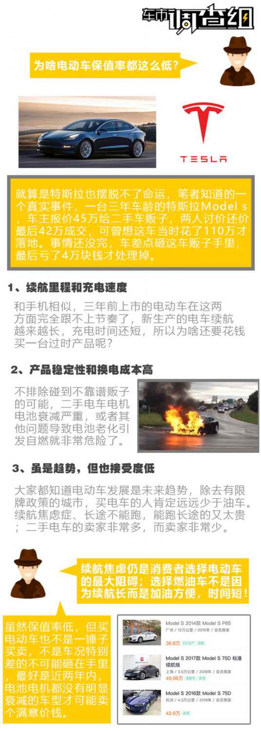 一直以來,消費(fèi)者選擇電動(dòng)車的多數(shù)原因都是由于所在城市的限牌政策,雖說電動(dòng)車可以不用像汽油車一樣承擔(dān)比較高的油費(fèi),養(yǎng)車、用車費(fèi)用也低一些,但別忘了,在二手車市場(chǎng)上電動(dòng)車幾乎會(huì)把你所有省下來的油費(fèi)給貶值回來。諸所周知,電動(dòng)車?yán)锉V德首罡叩木褪翘厮估趪?guó)內(nèi)某知名二手車交易平臺(tái)上,三年車齡的Model S保值率也只剩下35%左右,而其他電車就更慘不忍睹。不過電動(dòng)車也不是一錘子買賣,電動(dòng)車主也不是接盤俠,可以買也可以賣,無(wú)非就是價(jià)格合不合乎心意的問題,今天就來聊一下2018年買的電動(dòng)車怎么換才賠錢少。