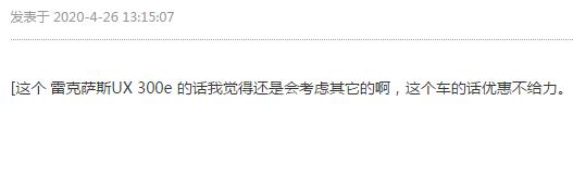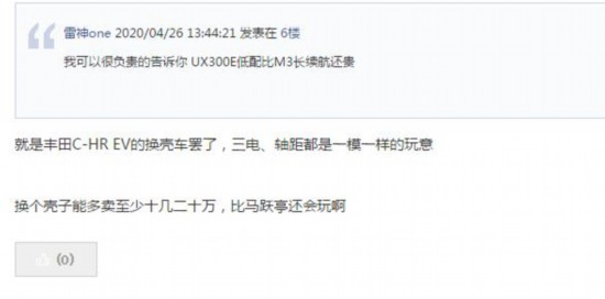 此外,雷克薩斯上月推出的首款純電車型UX300e,新車售價(jià)超出30萬元,根據(jù)補(bǔ)貼新政,今年7月22日后將無法享受新能源補(bǔ)貼。同時(shí),從論壇上消費(fèi)者的反應(yīng)來看,對(duì)其似乎也不:太看好,不禁讓人對(duì)雷克薩斯在華電動(dòng)車“頭炮”能否打響產(chǎn)生擔(dān)憂。