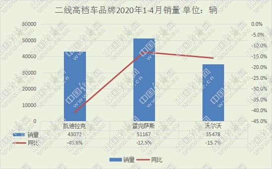 4月,二線高檔車市場(chǎng)呈現(xiàn)加速回升之勢(shì),凱迪拉克、雷克薩斯、沃爾沃均實(shí)現(xiàn)同比正增長(zhǎng),為二季度發(fā)展奠定良好開局。從前4月來看,雷克薩斯率先突破5萬輛,并將其與凱迪拉克的銷量差距拉大至8000余輛。