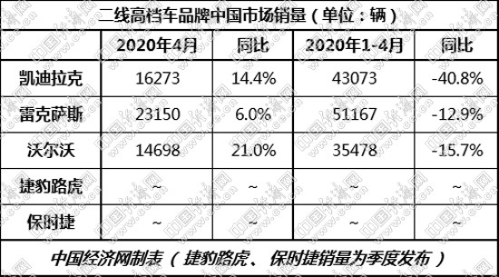得益于抗疫形勢(shì)持續(xù)向好,復(fù)工復(fù)產(chǎn)加快推進(jìn),4月二線高檔車市場(chǎng)呈現(xiàn)加速回升之勢(shì)。其中,按照月度公布銷量的三大品牌,4月均實(shí)現(xiàn)同比正增長(zhǎng),凱迪拉克、沃爾沃增幅更是達(dá)到兩位數(shù),而雷克薩斯也有著6%的上升,為二季度發(fā)展奠定良好開局。