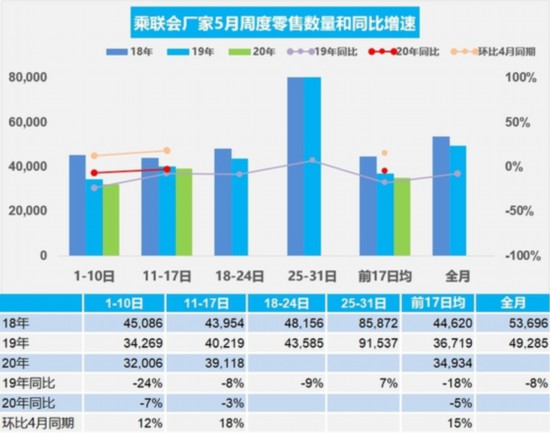 乘聯(lián)會(huì)表示,按照今年5月乘聯(lián)會(huì)數(shù)據(jù)的趨勢(shì),市場(chǎng)處于加庫(kù)存階段,去年5月是去庫(kù)存為主的特征。因此相對(duì)于去年5月前兩周經(jīng)銷商進(jìn)貨是比較克制的走勢(shì),今年5月前兩周的進(jìn)貨表現(xiàn)更好一些。這也是今年與去年的差異化周期趨勢(shì)的結(jié)果。