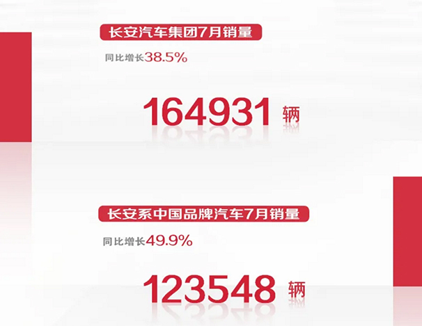 新華網(wǎng)北京8月8日電 8日,長安汽車對外公布的數(shù)據(jù)顯示,2020年7月延續(xù)上升勢頭,長安汽車單月整體銷售164931輛,同比增長38.5%。其中,長安系中國品牌汽車7月銷量達到123548輛,同比增長達49.9%。
