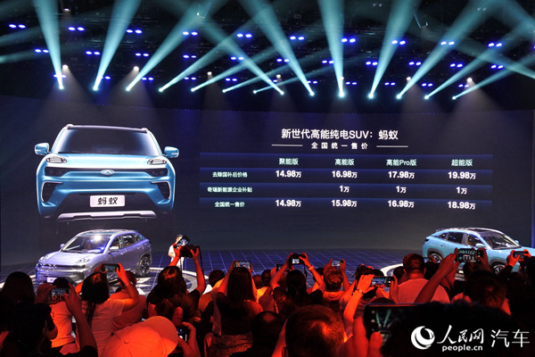 人民網(wǎng)北京9月23日電(鄂智超)日前,奇瑞新能源旗下全新純電動SUV螞蟻正式上市,今后“螞蟻”將成為奇瑞新能源旗下的完善產(chǎn)品系列。新車以“@LIFE平臺”打造,NEDC續(xù)航里程達(dá)510公里,提供聚能版、高能版、高能Pro版以及超能版四款版型,補(bǔ)貼后售價14.98萬元起。奇瑞汽車還宣布,螞蟻將提供終身整車質(zhì)保。