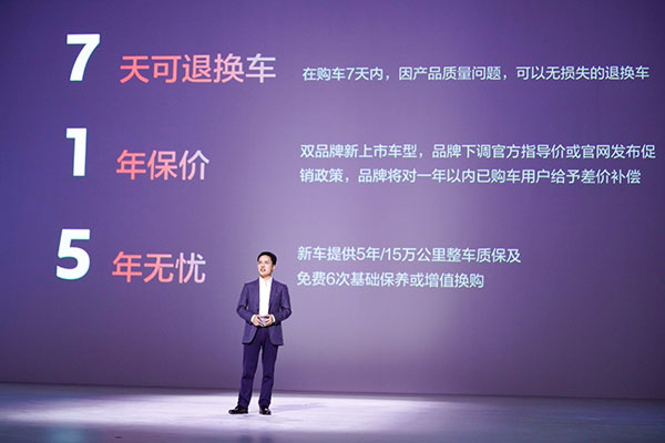 “買車放心”,開創(chuàng)性地推出“7·1·5”三項服務(wù)政策,即“7天可退換車”“新車承諾1年保價”“新車質(zhì)保5年無憂”。消費(fèi)者在購車7天內(nèi),因產(chǎn)品質(zhì)量問題,可以無損失的退換車;雙品牌新上市車型,品牌下調(diào)官方指導(dǎo)價,或官網(wǎng)發(fā)布促銷政策,將對1年以內(nèi)已購車用戶給予差價補(bǔ)償;新車至高享受5年/15萬公里整車質(zhì)保+免費(fèi)6次基礎(chǔ)保養(yǎng)(或可選擇增值換購禮),遠(yuǎn)高于三包標(biāo)準(zhǔn)和行業(yè)水平。