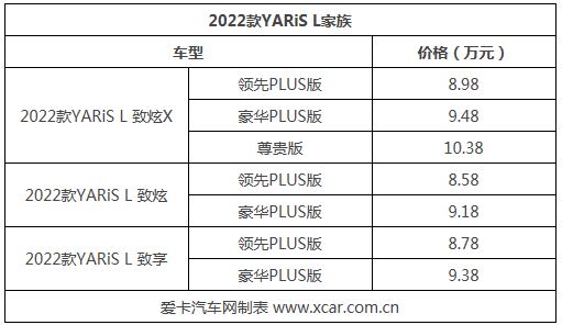 近日,我們從廣汽豐田官方獲悉,2022款YARiS L家族正式上市,其中YARiS L 致炫X提供3款車型,指導(dǎo)價格為8.98-10.38萬元;YARiS L 致炫提供兩款車型,指導(dǎo)價格為8.58-9.18萬元;YARiS L 致享提供2款車型,指導(dǎo)價格為8.78-9.38萬元。
