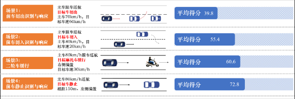 2022年,中汽中心首次新增輔助駕駛測評板塊,對智能網(wǎng)聯(lián)汽車的輔助駕駛系統(tǒng)進行全面綜合評價。結果顯示,參與測試的22款熱銷車型,輔助駕駛綜合表現(xiàn)平均得分僅52.9,最高得分87.0,有些受測車型沒有配備輔助駕駛功能,則得分為0。