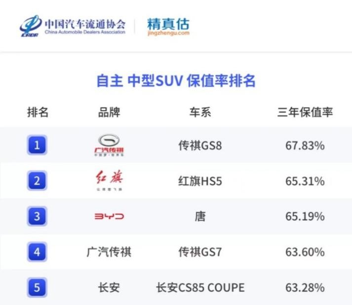 除了消費(fèi)者用終端銷量為這款車投票以外,在中國(guó)汽車流通協(xié)會(huì)發(fā)布的《中國(guó)汽車品牌保值率報(bào)告》中,廣汽傳祺GS8成為了2021和2022年度的自主中型SUV保值率第一的車型,而在2023年1月和3月的報(bào)告當(dāng)中,GS8的保值率也穩(wěn)居第一,這相當(dāng)于二手車行業(yè)也肯定了這款車的價(jià)值。