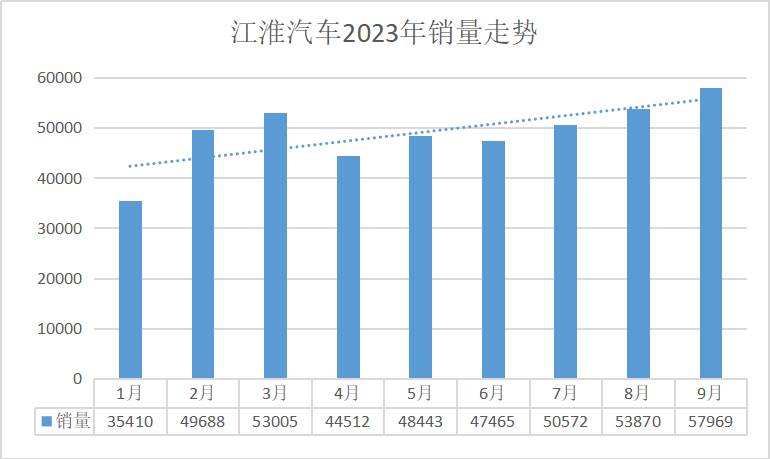江淮汽車2023年月銷量走勢