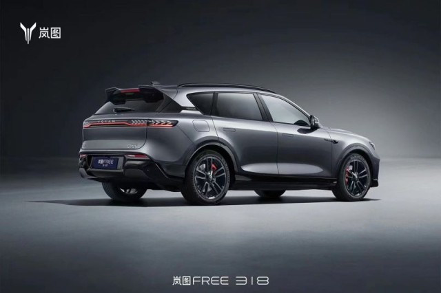嵐圖FREE 318的車(chē)側(cè)與車(chē)尾也進(jìn)一步“黑化”,運(yùn)動(dòng)化輪圈內(nèi)還采用了紅色制動(dòng)卡鉗,此外,新車(chē)尾部激進(jìn)的尾翼也為整體視覺(jué)效果增色不少,給人很強(qiáng)的視覺(jué)質(zhì)感。