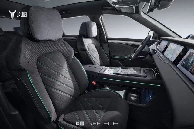 嵐圖FREE 318的內(nèi)飾主要采用了全新的黑+綠配色,大量觸感出色的軟性材質(zhì),滿足視覺(jué)和觸覺(jué)雙重質(zhì)感,新車(chē)不僅搭載了能夠滿足當(dāng)下的智能化體驗(yàn),像前排座椅頭枕等也進(jìn)一步提升了視覺(jué)體驗(yàn)。