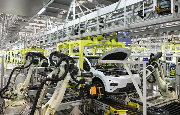 2025年1月9日在位于重慶市渝北區(qū)的長安汽車數(shù)智工廠總裝車間拍攝的自動(dòng)化生產(chǎn)作業(yè)現(xiàn)場。新華社記者 王全超 攝