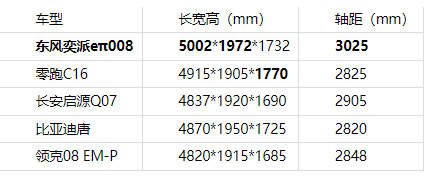 家庭出游的核心訴求是“全員舒適”,空間表現(xiàn)直接影響乘坐體驗(yàn)。在這一點(diǎn)上,東風(fēng)奕派eπ008交出了亮眼答卷,超5米的車長(zhǎng)(5002mm)與超3米的軸距(3025mm)全面碾壓同級(jí)競(jìng)品。五款車型中,東風(fēng)奕派eπ008是唯一一款車長(zhǎng)超過5米、軸距超過3米的車型。更高級(jí)別的車長(zhǎng)和軸距,帶來了更充裕的縱向空間,確保每位乘客皆可舒展身姿,盡享愜意旅途。