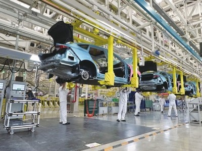 東風本田位于武漢經(jīng)開區(qū)的新能源工廠智能生產(chǎn)線。張家振/攝影