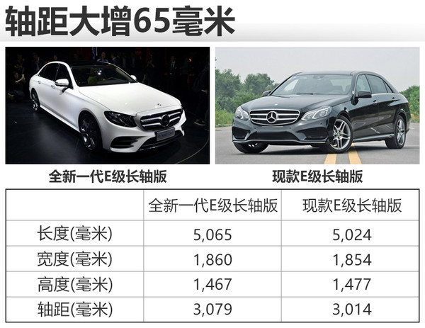 尺寸方面,奔馳全新一代E級(jí)的標(biāo)準(zhǔn)軸距版在長度和軸距方面較之現(xiàn)款大幅增加,專為中國研發(fā)的長軸版本尺寸比現(xiàn)款有所增加,新車長寬高分別為5,065*1,860*1,467毫米,軸距為3,079毫米,與現(xiàn)款E級(jí)相比車身長度增加41毫米,寬度增加6毫米,軸距長度更是增加65毫米。(圖/文 網(wǎng)通社 郭王虎)