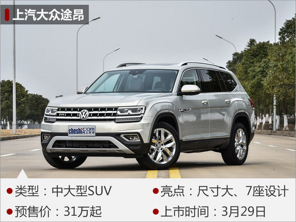 上汽大眾于2016年廣州車展發(fā)布了定位更高的中大型全新SUV-途昂(Teramont),新車將于今年3月29日正式上市。外觀上,新車采用全LED光源前大燈組、“W”型的日間行車燈,并與進氣格柵連為一體。內(nèi)飾配置方面,新車擁有1.18平方米全景天窗、自適應(yīng)巡航、駕駛模式選擇、12.3英寸液晶儀表等。大眾為途昂配備了2.0T(高/低功率)和2.5T V6渦輪增壓發(fā)動機,其中2.5T發(fā)動機的額定功率可達220kW,峰值扭矩500Nm,并提供四驅(qū)系統(tǒng)。