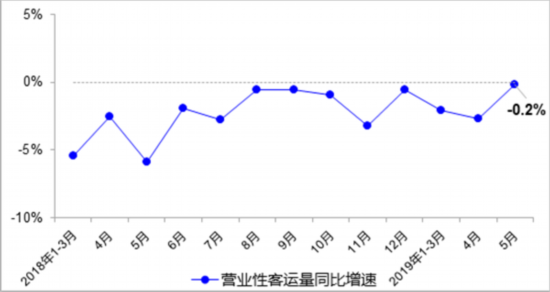 圖2 全社會(huì)營(yíng)業(yè)性客運(yùn)量月度同比增速變化