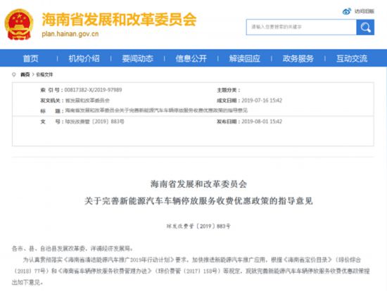 8月1日,海南省發(fā)展和改革委員會發(fā)布《關(guān)于完善新能源汽車車輛停放服務(wù)收費優(yōu)惠政策的指導(dǎo)意見》(以下簡稱《意見》),提出一系列指向清晰的指導(dǎo)意見。據(jù)此,海南年內(nèi)將出臺新能源汽車車輛停放服務(wù)收費優(yōu)惠政策,不僅比燃油汽車停車收費優(yōu)惠,而且新能源汽車在公共區(qū)域停車還將免費。